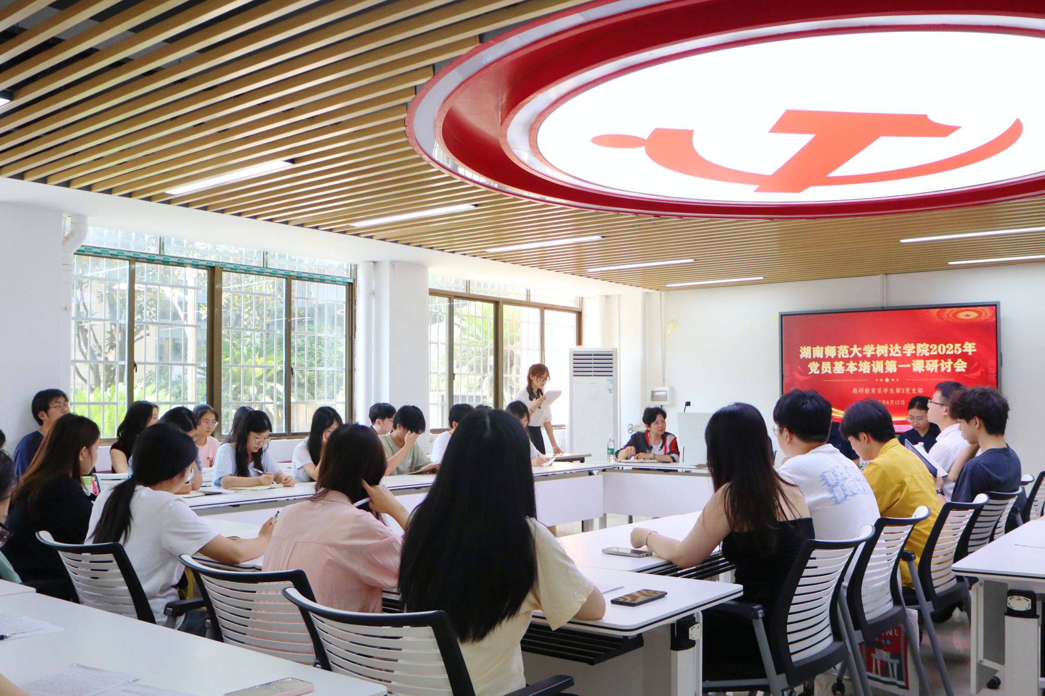 (记者 舒欢)6月17日下午,我院教师教育系学生第三党支部在党员之家开展2025年党员基本培训第一课研讨会。校离退休工作处副处长方俊雄、我院副院长欧阳锡禹出席研讨会。研讨会由教师教育系学生第三党支部书记孙一心主持。