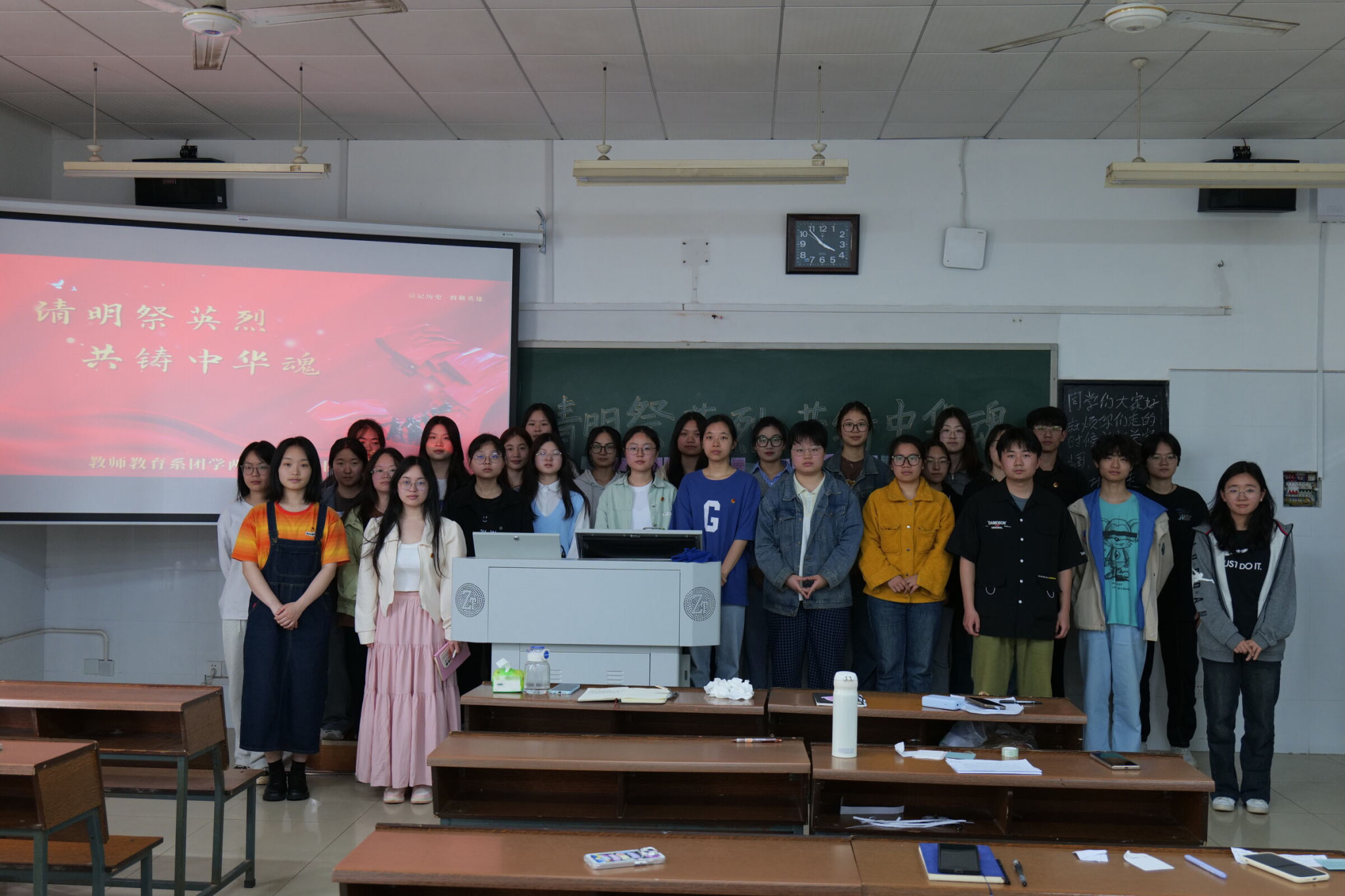 (记者 陈欣玉 张铠 李皖湘)4月18日中午,我院教师教育系团学两会于达善楼101教室开展以“清明祭英烈,共铸中华魂”为主题的团日活动。活动由组织部副部长鄢颖、彭青禾主持。