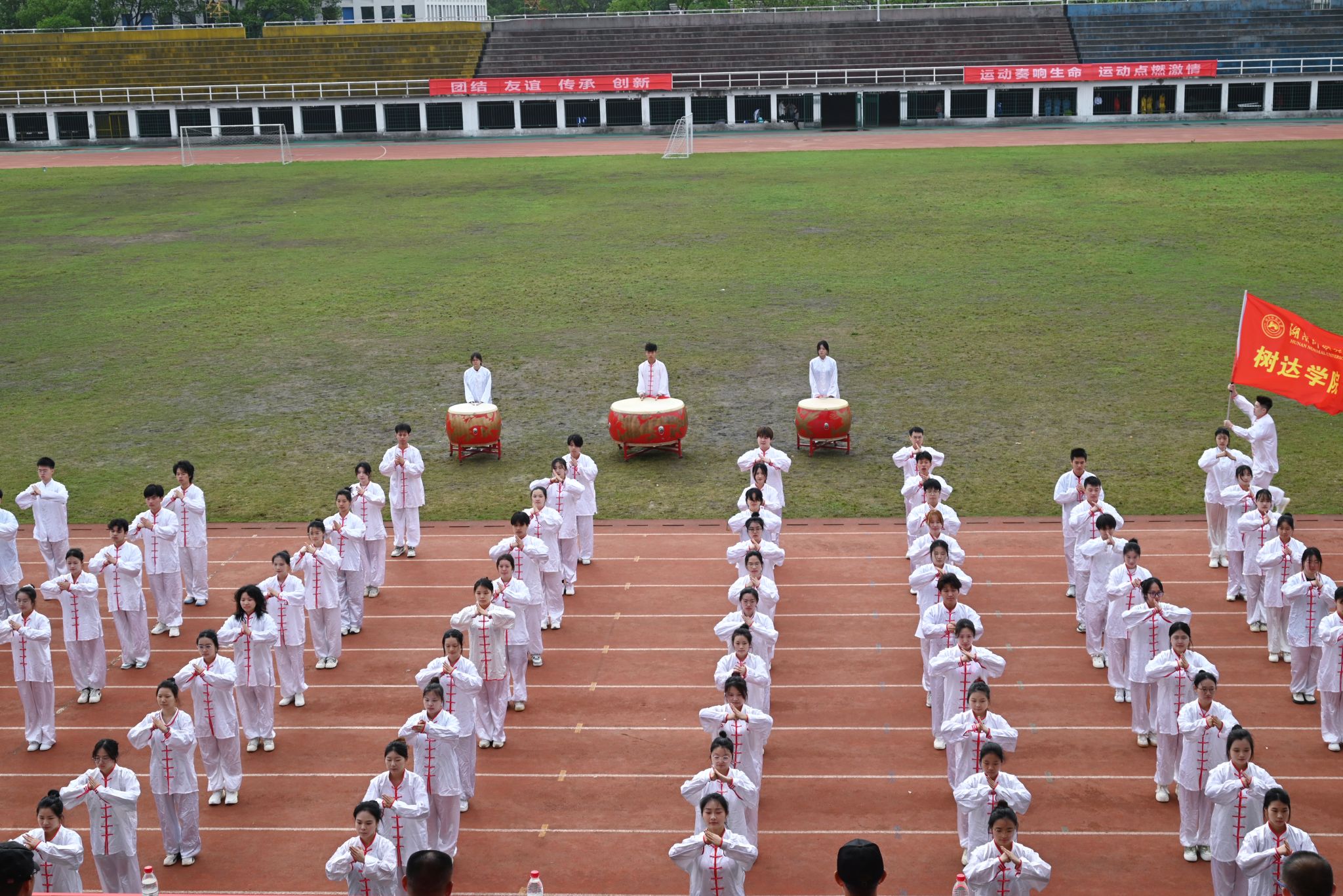 我院共有100余名学生代表学院参赛。伴随着灵动的音乐,我院太极拳代表队团结协作,共同努力,以热情饱满的态度对待赛事,赛出我院学子昂扬向上的新风采,赢得了评委和现场观众的高度认可。全体工作人员履职履责,认真有序地组织训练,充分展示出我院学子团结拼搏、锐意进取的精神风貌。