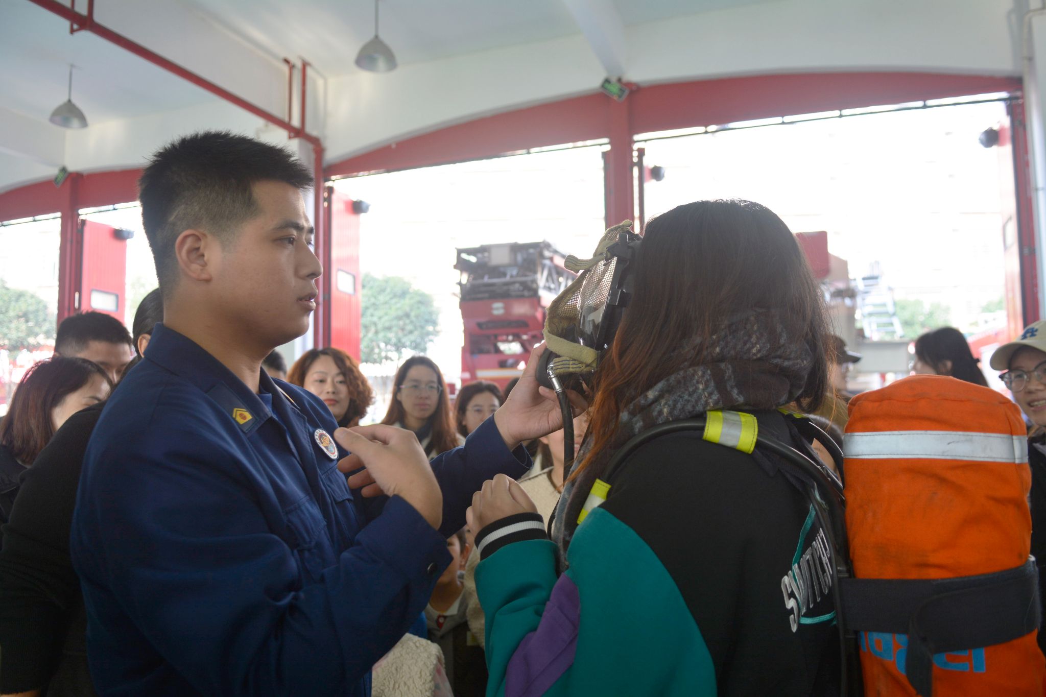 成员们积极参与,体验了消防服的穿戴和消防面罩的使用。