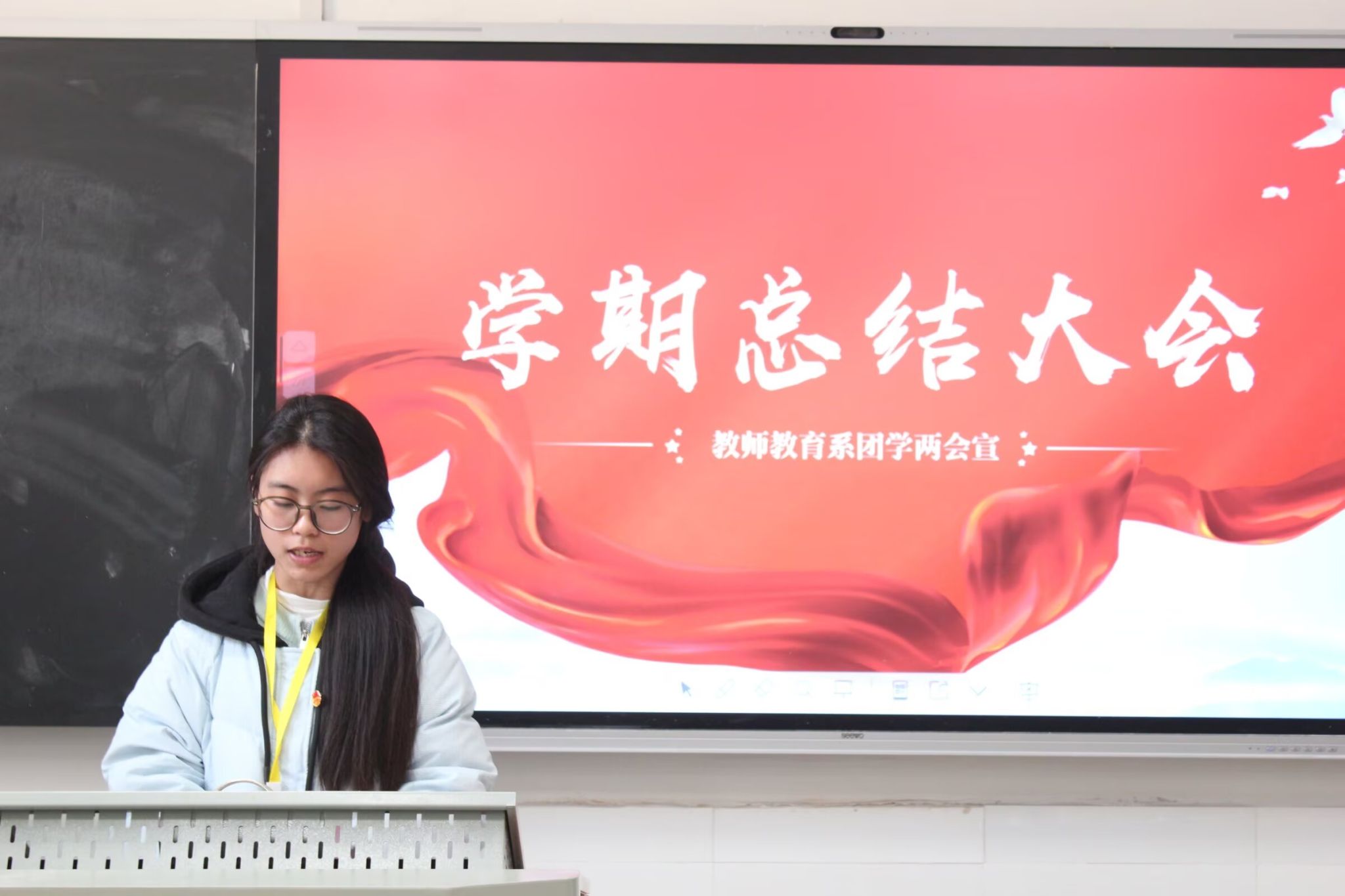 (通讯员 彭璟怡 洪鹏志 胡超凡)12月16日中午,我院教师教育系团学两会在达善楼112教室召开学期总结大会。教师教育系团总支书记熊椰出席会议。会议由学生会健康服务部成员肖雨妍主持。