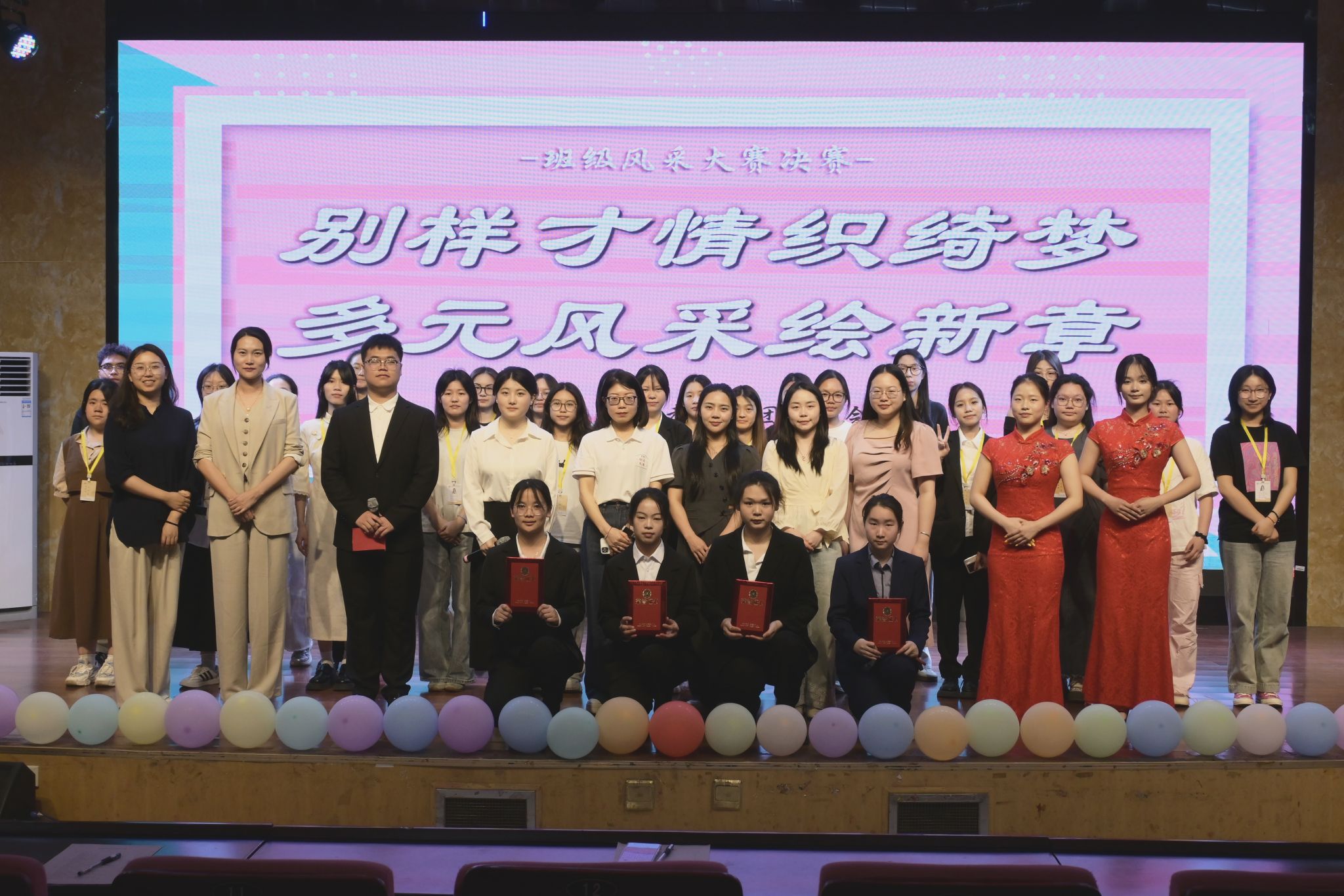 熊椰对比赛进行点评。她表示,班级风采大赛的顺利开展,得益于团学成员们的周密策划与辛勤付出及各部门之间的团结合作。各参赛班级充分发挥了学科专业优势,将特色元素巧妙融入到节目中,并呈现出精彩表演,充分彰显了当代大学生蓬勃的精神风貌。